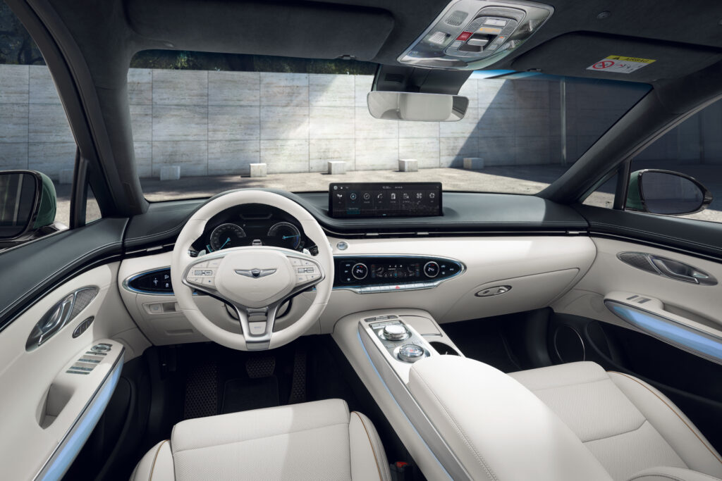 Äußerlich bleibt der Electrified GV70 seinem Ursprung treu – inkl. des markanten „Crest“-Grills (geschlossen) und des Two-Line-Lichtdesigns. Innen warten ein großzügiger Raum, edle Materialien und ein flacher Fahrzeugboden ohne Mitteltunnel.